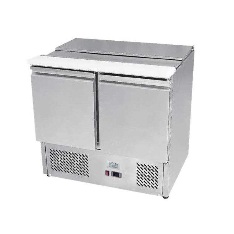 The Ice-A-Cool ICE3800GR 2 Door Refrigerated Saladette Prep Counter is a compact and tidy preparation counter which can fit perfectly into any business looking to store refrigerated goods while also offering an 900mm x 135mm useable working area.