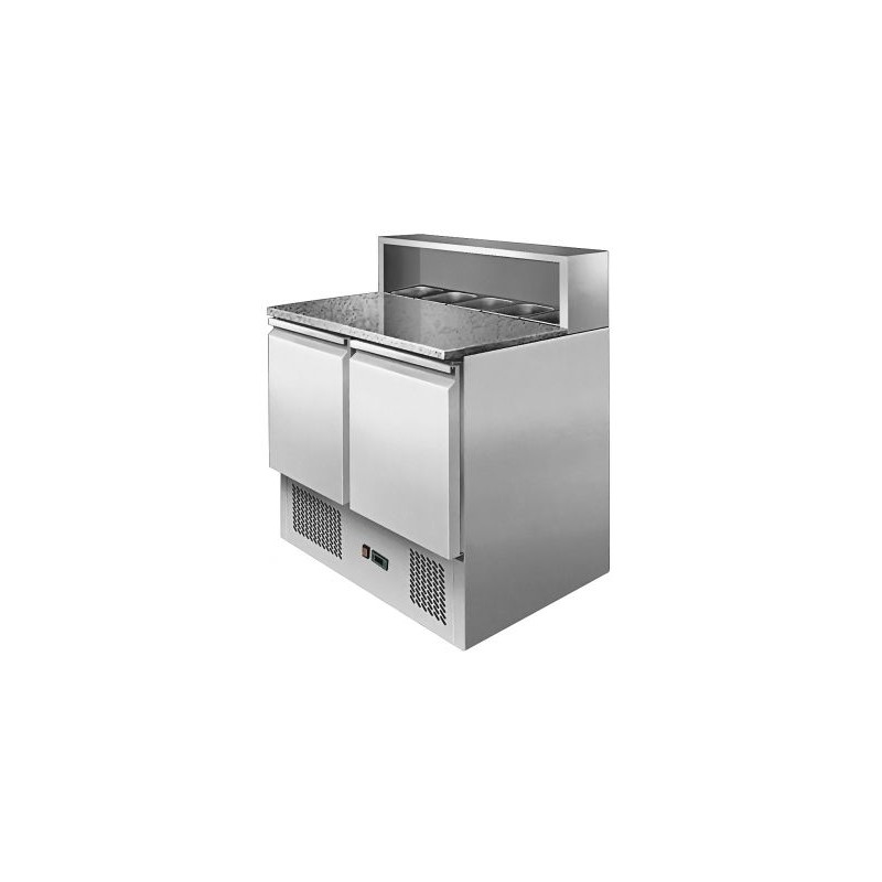 The Ice-A-Cool ICE3831GR 2 Door Marble Top Saladette Prep Counter is a compact and tidy preparation counter which can fit perfectly into any business, with a capacity of 5 x 1/6 GN pans meaning your chiled ingredients will be close to hand.