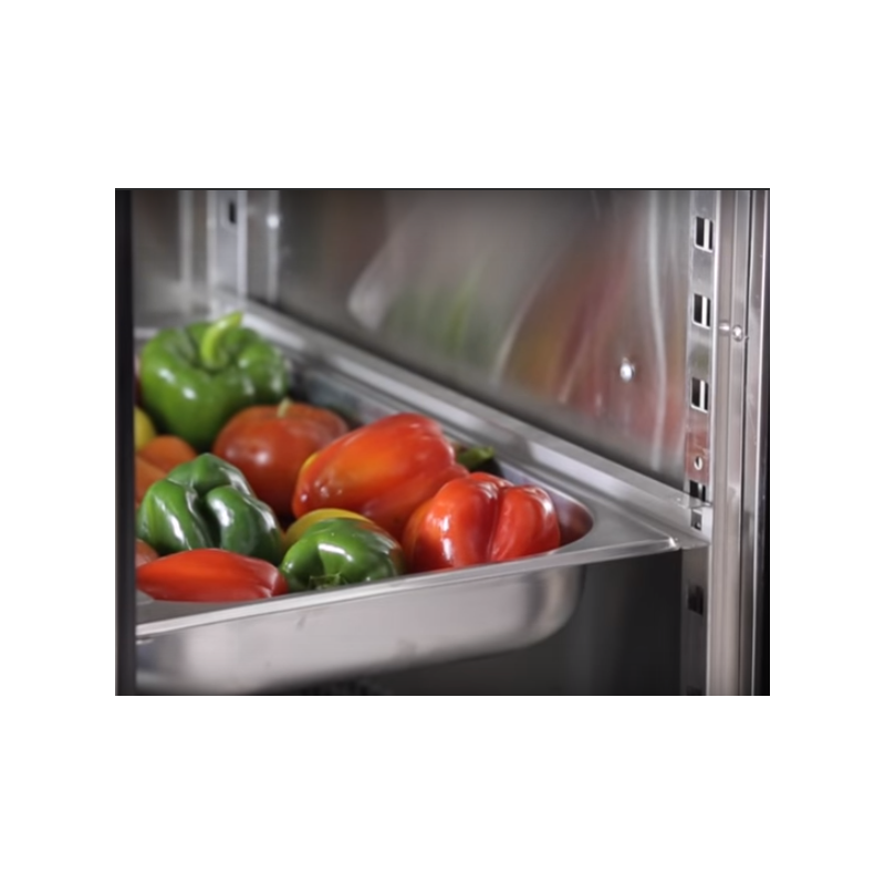 The Atosa EPF3422HD Two Door Table Fridge is construced with a high grade Stainless Steel Exterior & Interior and is equipped with a heavy duty Embraco Compressor