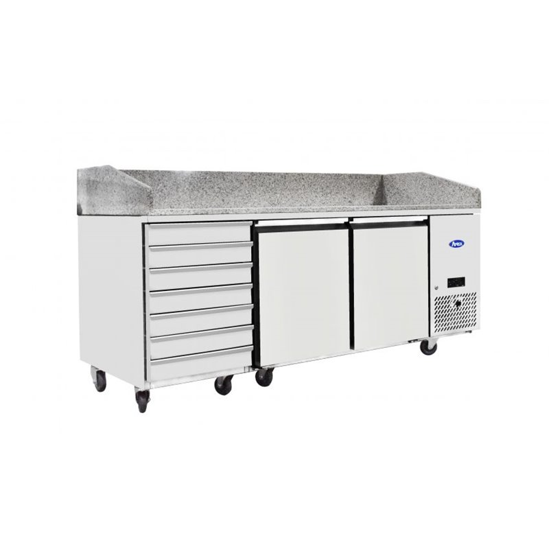 Pizza Prep Counter 2 Doors + 7nr Ambient Drawers, Marble Top
