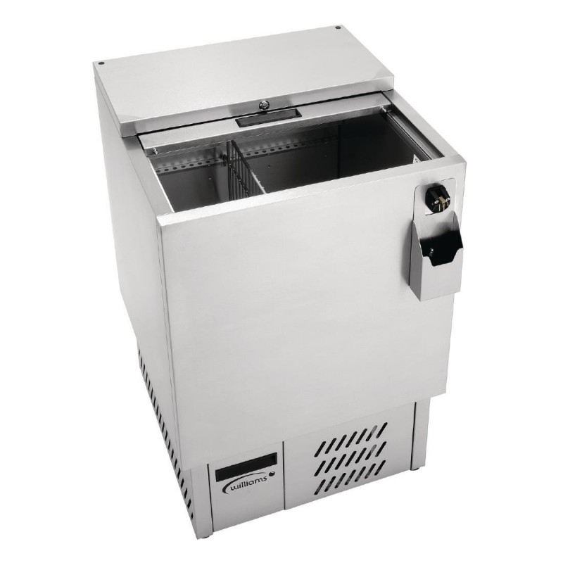 Have quick and convenient access to your best chilled drinks with this top loading Williams Bottle Well. Designed with environmentally friendly OPD insulation, this bottle well offers fantastic thermal efficiency. The sliding lid can be removed for easy cleaning and restocking, with the internal well holding as many as 240 cans or 158 bottles.