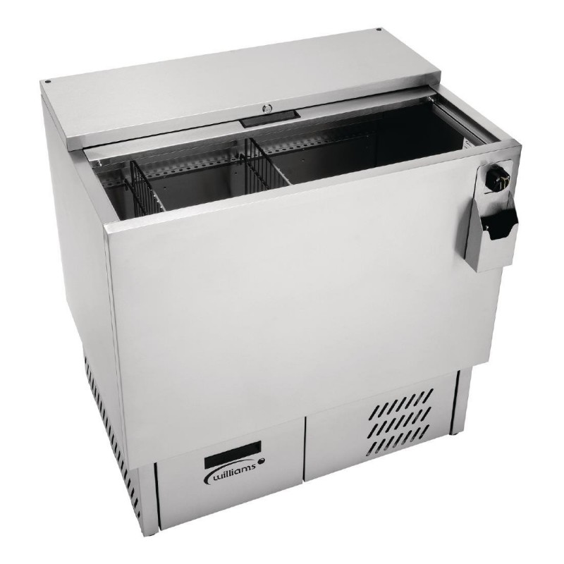 Keep your chilled bottles and cans in close reach with this Williams Bottle Well, a handy open top container for hundreds of chilled drinks. The detachable sliding door and simple design of this bottle well makes the process of restocking and cleaning very easy. A cap catcher is fitted alongside a bottle opener on the side of the unit, making the process of serving drinks almost instantaneous.