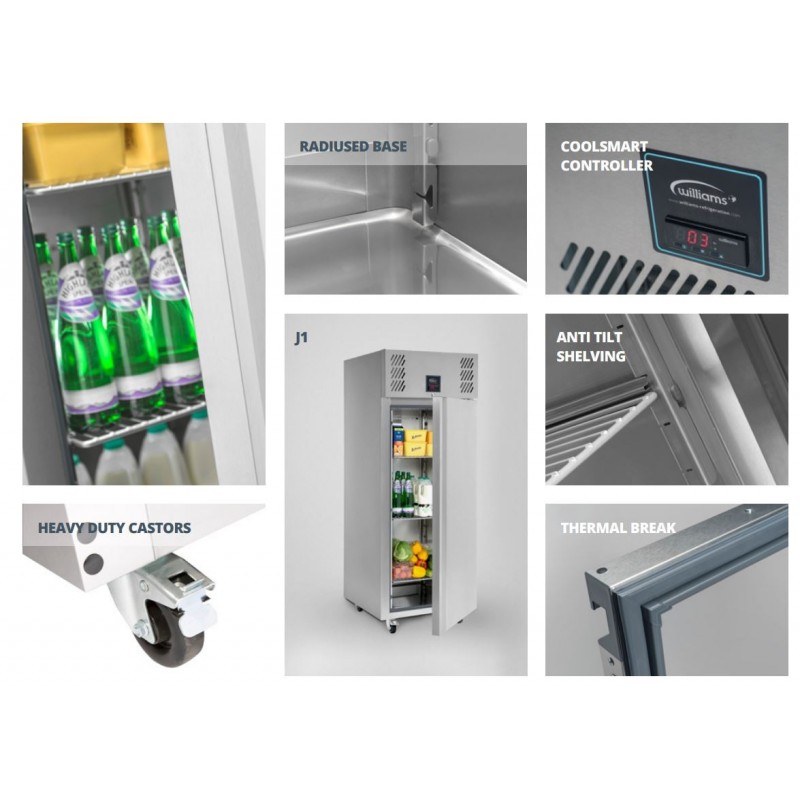 Williams Jade LJ1-SA Designed for the toughest of commercial kitchen environments, the Williams Jade LJ1-SA upright freezer offers outstanding performance, even when ambient temperatures reach up to 43 . Intelligent, environmentally conscious design has been factored in throughout the cabinet, from the full-length handle to the thick insulation which improves accessibility and reduce running costs respectively. Whether you're running a busy school kitchen or prepping dishes in a high-end restaurant, this high quality freezer from Williams is a superb choice.
