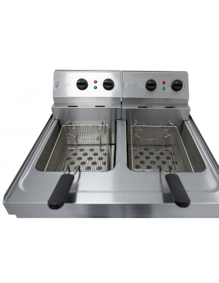 The Parry NPDPF6 Twin Electric Pedestal Fryer has been designed to be a stand alone fryer but is comfortable as part of a run. The fryer is capable of frying up to 28 KG of chips per hour / per tank. Parry is top of the range branded catering equipment.