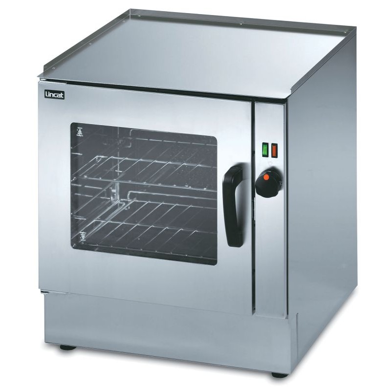The Lincat V6/D is an electric oven with a glass door thermostatically controlled with a temperature range from 50 to 250°C. This unit can also support a suitably sized Silverlink 600 counter-top unit enabling you to save space. With 4 shelf positions the V6/D is supplied with 2 shelves and can accept 2/3 GN size containers.