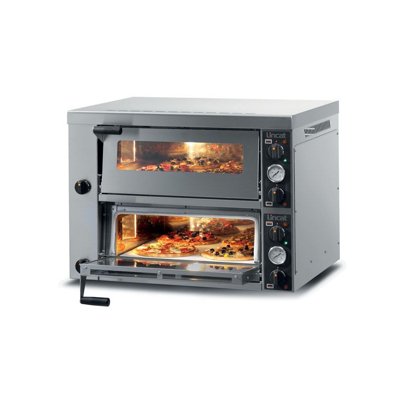 The Lincat PO425-2 is ideal for restaurants pizzerias takeaways cafés and fast food outlets. Featuring a firebrick base for crisp even cooking this unit is perfect for deep pan thin crust fresh dough part baked or frozen pizzas. This oven is also ideal for cooking a variety of other foods such as ciabatta naan and garlic bread even lasagne jacket potatoes pies and pastries.