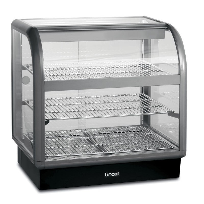 The Lincat C6H/75S is a curved front heated merchandiser suitable for self service. The extruded aluminium frames and metallic silver finish enhances display without detracting from the contents.