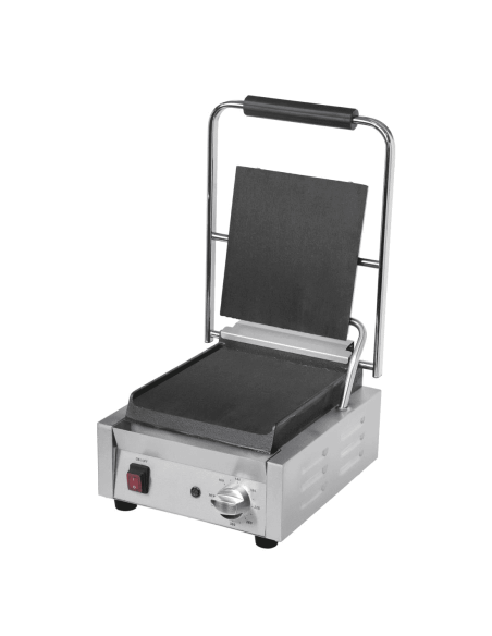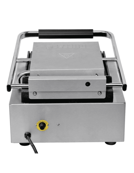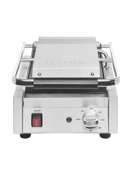 Buffalo DY996 Bistro Contact Grill Single Flat Plate. Compact and convenient, the Buffalo bistro contact grill is a great choice for sites with limited space. With strong flat cast iron plates, the grill offers fantastic cooking performance, maximising the contact between the plates and the food. Contact is further improved by the swivel-mounted top plate, which helps optimise the heat being channelled into the food. Not only does this help you cook faster, it also provides a more consistent cook throughout the food.
