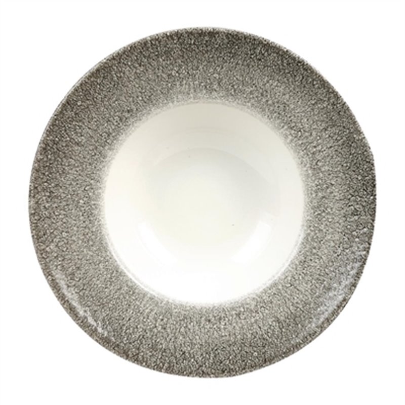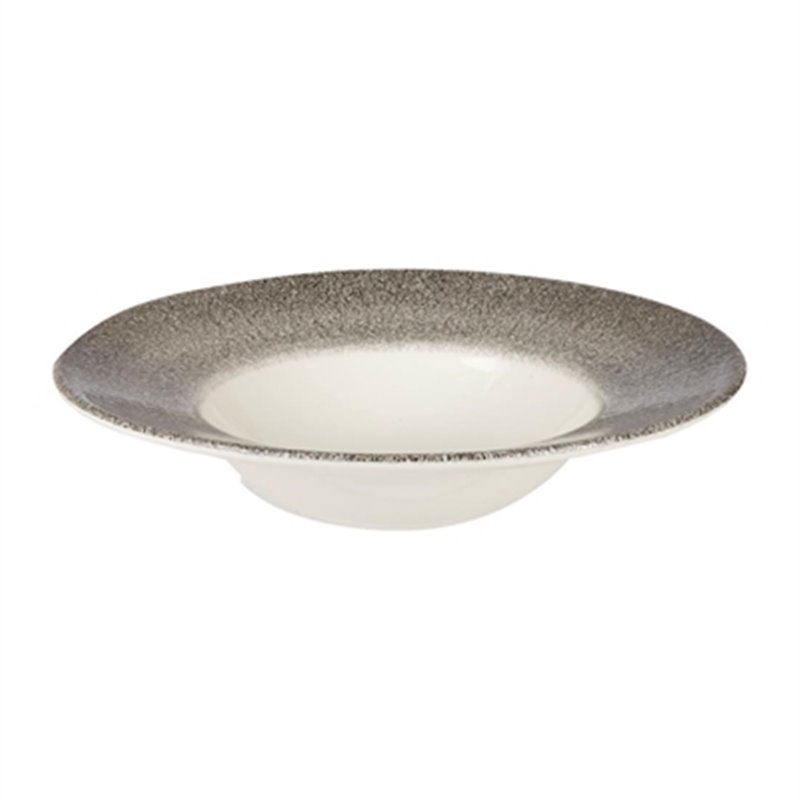 Churchill Studio Prints Raku Round Wide Rim Bowls White and Quartz Black 280mm