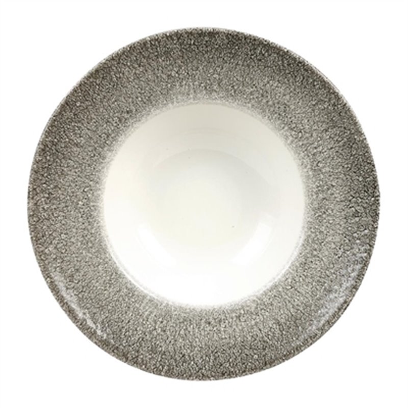 Churchill Studio Prints Raku Round Wide Rim Bowls White and Quartz Black 240mm