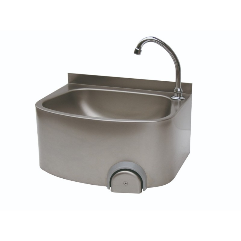 Stainless steel knee operated hand wash basin helps avoid any possible contamination ideal for the healthcare environment.