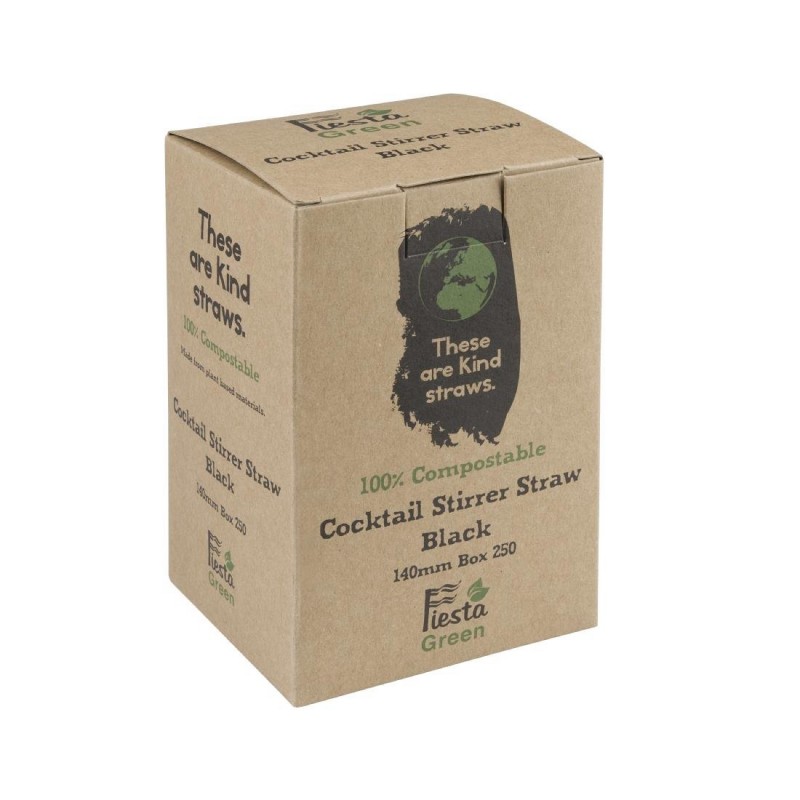 Fiesta Green Compostable CPLA Cocktail Stirrer Straws Black x 250