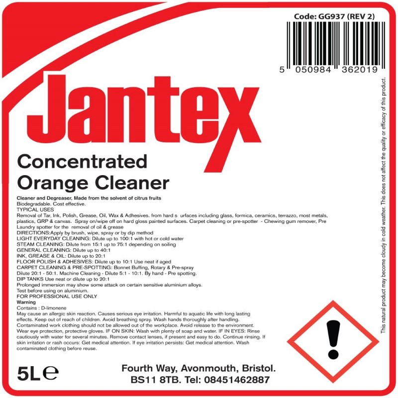 Jantex Orange-Based Citrus Cleaner and Degreaser Concentrate 5Ltr