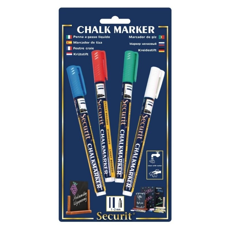 Set of 4 Securit 2mm Liquid Chalk Pens Assorted Colours