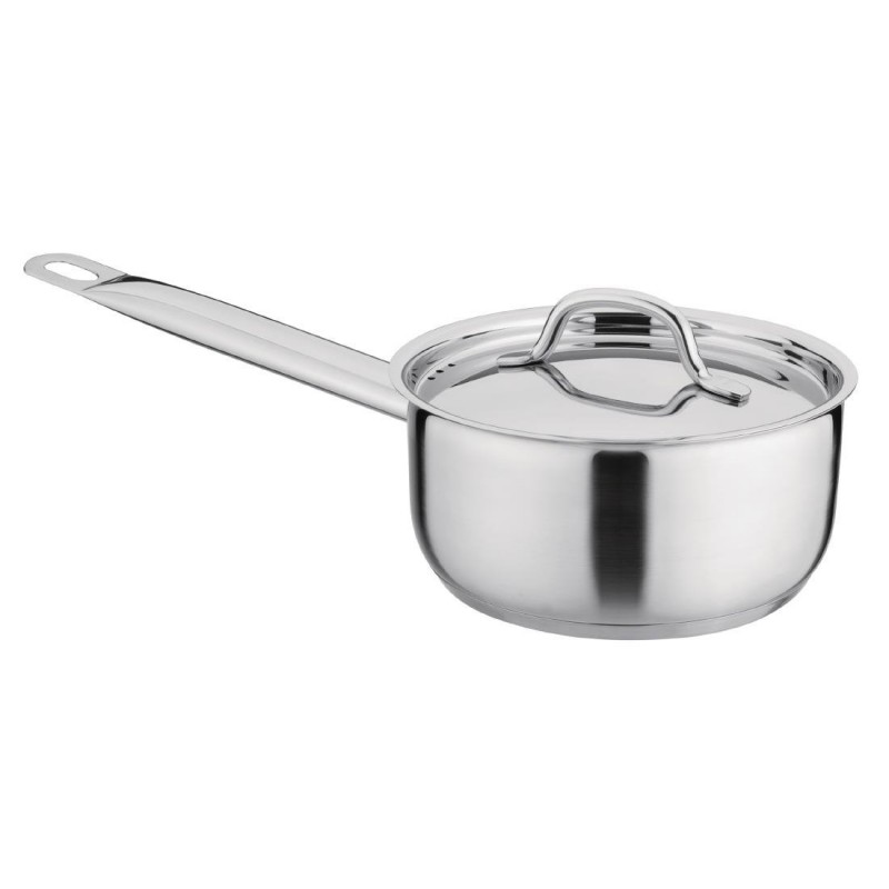 This Canteen 1500ml capacity saucepan is made of highly durable stainless steel with an aluminium base, giving it a long lifespan as well as great heat retention and distribution This results in consistent, even cooking as the aluminium base also helps to resist hot spots The pan is suitable for use on all cooking surfaces, including induction hobs and is easy to clean, making it perfectly suited for regular use in any commercial kitchen Lid is also included