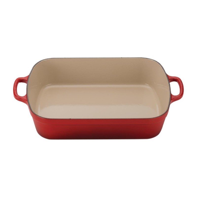 The even heat distribution of this versatile enamelled cast iron roaster makes it ideal for roasting meat and potatoes or cooking homemade lasagne and crumbles When roasting meat, the dish can be placed on the hob for deglazing a gravy or sauce Inspired by our iconic cast iron casseroles, the new Signature Roasters feature the new, larger Le Creuset Signature handles for easier lifting and carrying even when wearing oven gloves Sturdy and resistant, it will withstand the high searing temperatures of the oven or barbecue and stand the test of time Stylish and colourful, it makes a perfect serving dish too as cast iron keeps food warmer for longer at the table