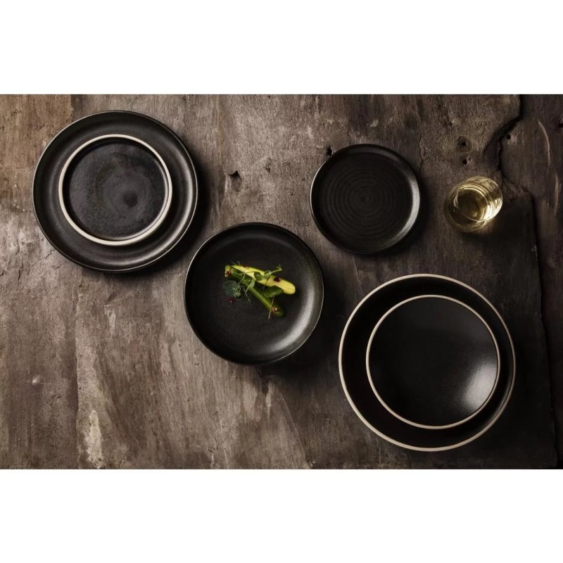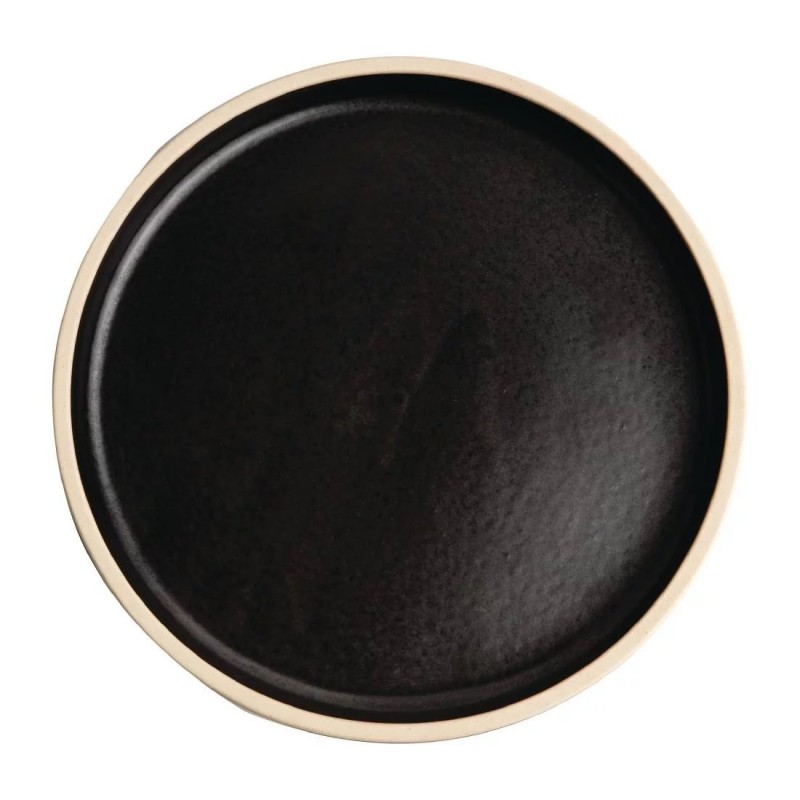 Dusky black with a contrasting unglazed rim - the striking Flat Plate from Olympia Canvas is crockery that's made to catch the eye