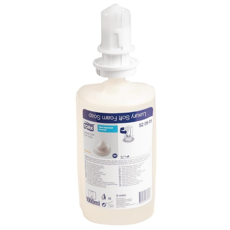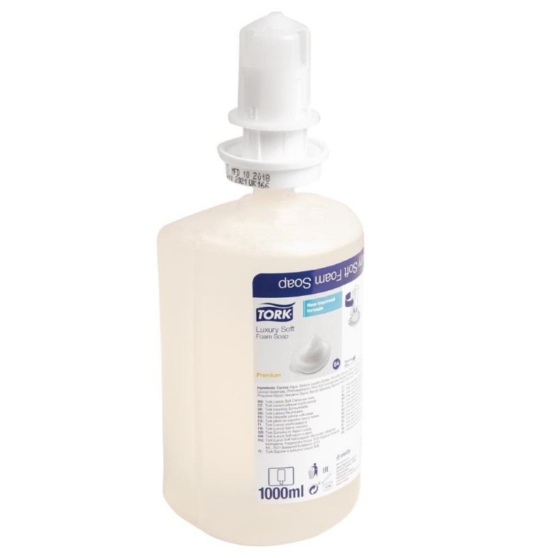 Give guests an indulgent handwashing experience with this pack of 6 x 1Ltr Tork Luxury Soft foam hand soap bottles The mild formula makes this soap gentle on the skin, keeping hands lavishly soft and conditioned This will add a premium touch to your washroom facilities and leave a great first impression on customers