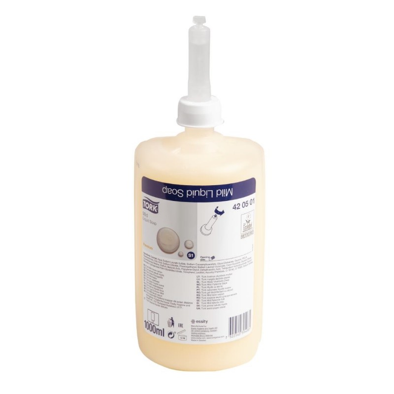 Ensure all of your customers can wash their hands safely and comfortably with this pack of 6 x 1Ltr Tork mild liquid hand soap bottles This mild formula contains moisturising and replenishing ingredients to guarantee gentle handwashing for all skin types This will leave your guests' hands clean, nourished and wonderfully conditioned