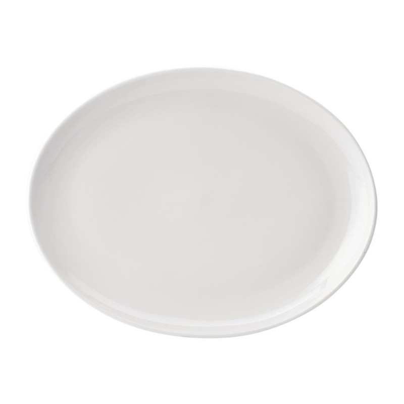 Enrich your table settings to higher levels with these 360mm oval plates from Utopia's Pure White range