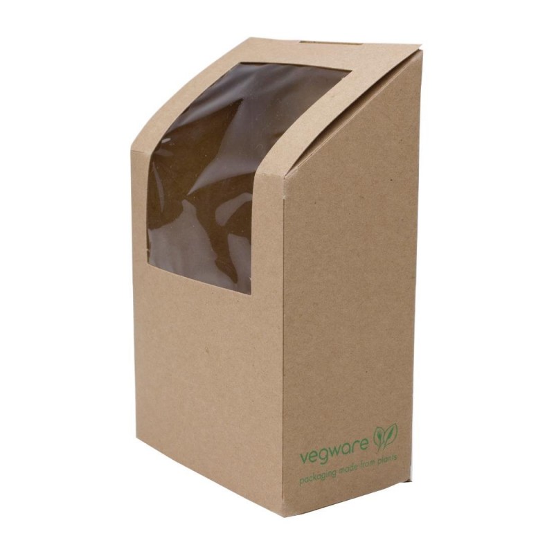 Present your tortilla wraps in highly sustainable and practical packaging with these Vegware compostable kraft tortilla wrap cartons Made from sustainably-sourced kraft paper and featuring a PLA window, these wrap cartons are fully compostable and a more eco-friendly alternative to standard plastic-lined packaging As such, these cartons will help you improve your green footprint, decrease the amount of waste you send to landfill and meet increasing demand for eco-friendly food packaging