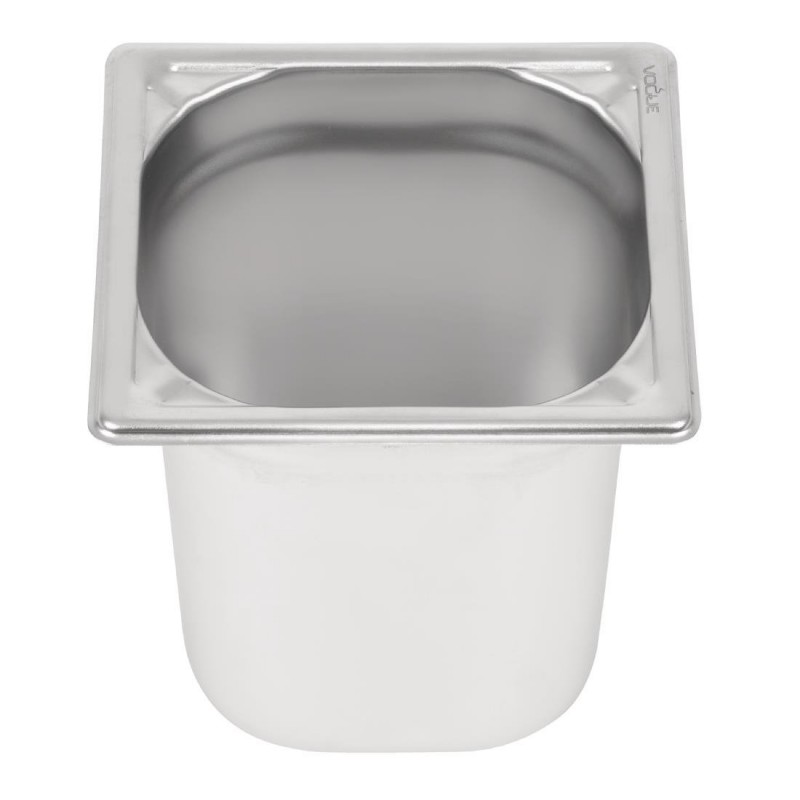 Save yourself the cost and hassle of replacements with this 200mm deep heavy duty 16 size gastronorm pan, offering a robust 304 stainless steel construction with reinforced corners This makes the pan extremely tough and able to stand up to the rigours of very day life in a busy service environment, even if dropped on a concrete floor The pan is also designed with an overhanging rim which secures it when placed in a prep, buffet station or GN pan rack Prepare, cook, store and serve food with this GN pan from trusted brand Vogue, which offers a long, reliable service life