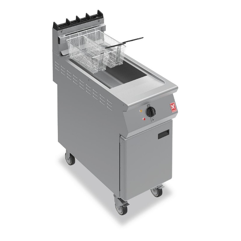 Highly powerful yet efficient, the natural gas Falcon F900 G9341 Twin Basket Fryer enables fuss-free frying during the busiest restaurant, canteen or takeaway services The intelligent design means the fryer only needs 18 litres of oil to operate, whilst channelling 23kW of heating power into the tank This means an incredibly fast recovery time, allowing a huge chipshr output of 32kg - impressive for a fryer of this size Supplied on castors to make cleaning and maintenance easier