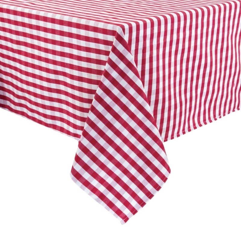 Perfectly suited for use in any caf�s or tea rooms, the 1780(W) x 1780(L)mm red and white gingham polyester tablecloth offers superb durability and functionality at an incredibly affordable price Made from 100% polyester, the tablecloth is both exceptionally hardwearing and soft to the touch, guaranteeing a long-lasting life while giving your customers a more pleasant dining experience The heavyweight material also makes this table linen easy to wash and iron, helping you keep it in immaculate condition and ready for use at all times Hemmed edges and the traditional Gingham design also give your establishment a more sophisticated appearance to help you win over your guests