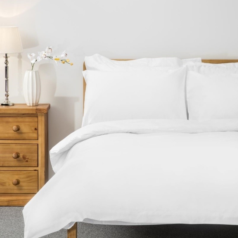 This plain white duvet cover from our Percale range is clean and crisp, with the versatility to complement a wide range of different interior designs Constructed from a combination of cotton and polyester for a mixture of luxury and practicality, this superking-sized duvet cover is a handy mix of luxury and practicality A high thread count provides a smooth and inviting sleeping space, while this easy care cover also possesses the durability of polyester to makes it fit for purpose time and again for an extended period of life