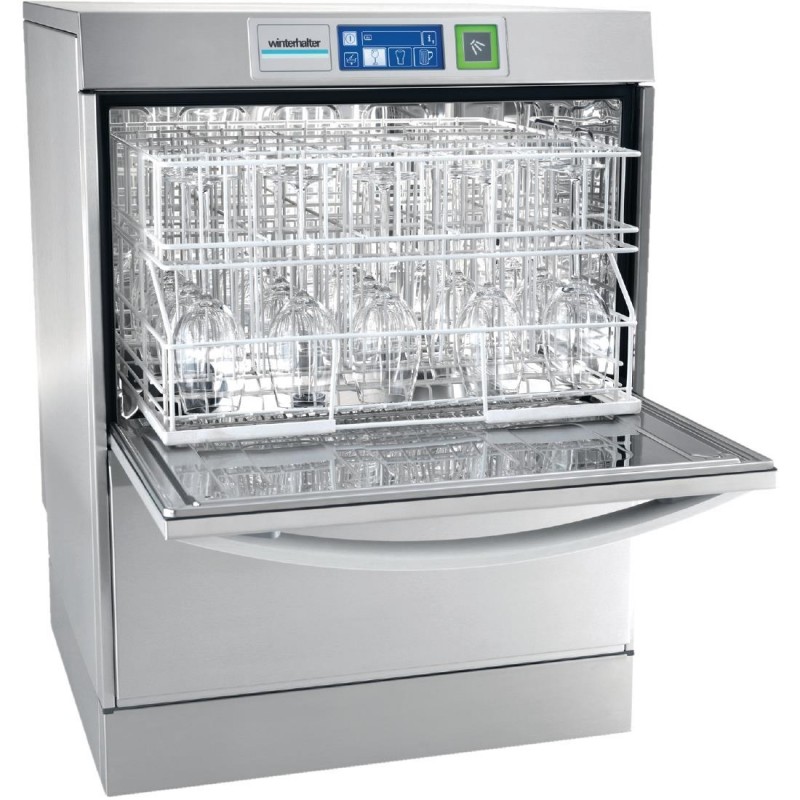Obtain sparklingly crystal-clear glassware without the need for polishing with the single phase Winterhalter Excellence-i UC-M Glasswasher Fitted with an integral reverse osmosis device, the glasswasher uses the innovative water treatment process to deliver flawless wash results day after day User-friendly touch screen control and robust stainless steel construction help to make the glasswasher simple to use and clean The warewasher also benefits from reduced running costs too, thanks to advanced efficiency technology throughout the unit