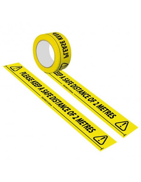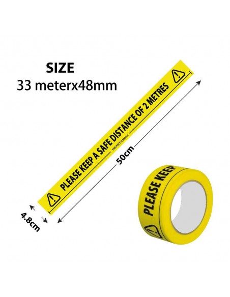 Social Distancing Floor Tape Yellow Hazard Safe Distance 2 Metres 50mm x 33m