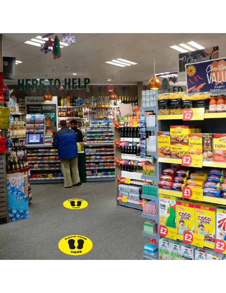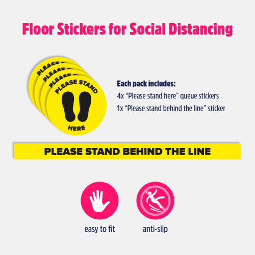 Social Distancing Shop Floor Stickers PACK OF 5 - Give your customers the confidence that you are taking all required precautions and have employed social distancing measures.