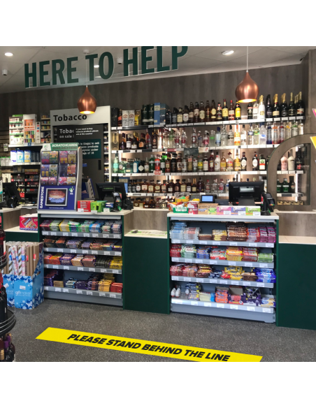 1x "Please stand behind the line" sticker (1000mm x 70mm) Self Adhesive