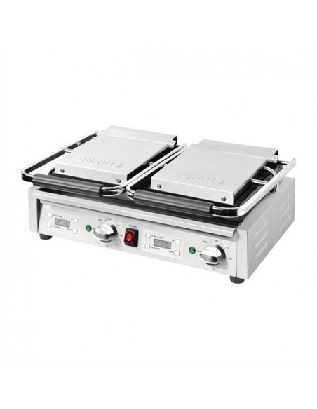 With rapid heat-up cast iron grilling plates, the Buffalo contact grill is a reliable and user-friendly addition to the professional kitchen. From built-in timers and simple dial thermostat control, to the large capacity grease collection tray and counter-balanced plates, the Buffalo is packed full of features to make grilling fast, precise and mess-free. Ideal for coffee shops, cafés, kiosks and more. The addition of twin digital timers gives you precision, whilst the built-in drip tray and stainless steel construction leads to simple cleaning at the end of a busy service.
