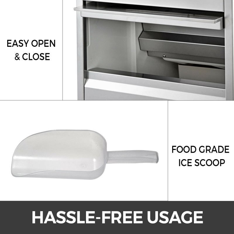 - Powerful 380W fluoride-free compressor with ETL approval for fast cooling, low energy consumption, low noise, and stable operation. Easy opening and closing lid. Ice scoop included for easy access.