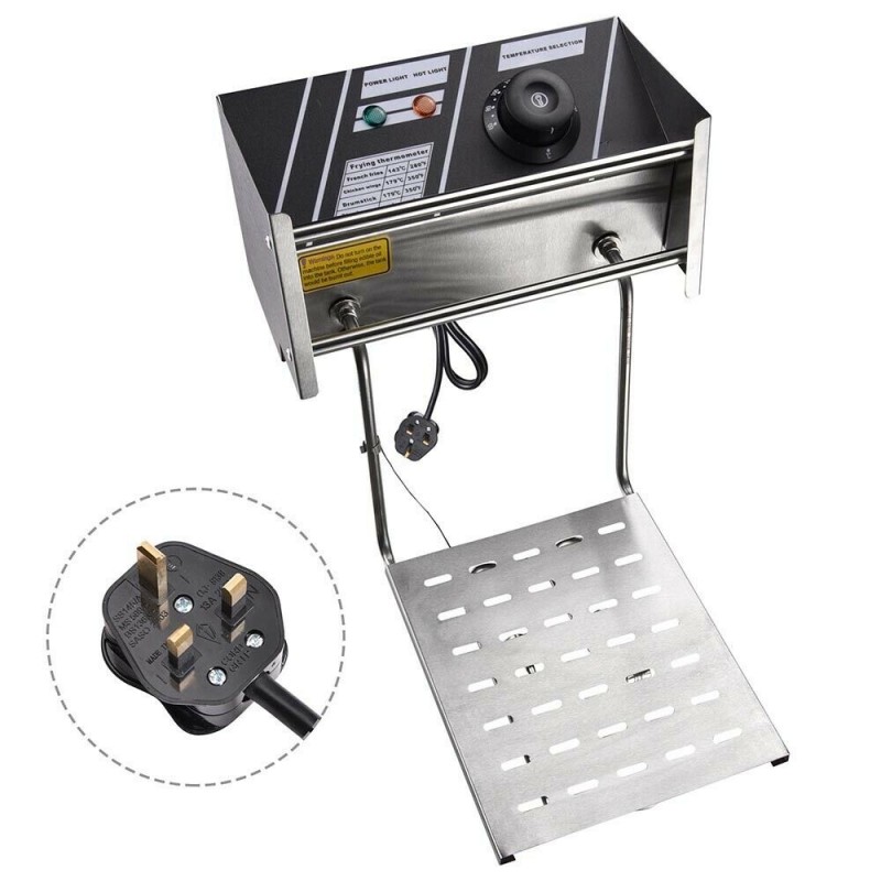 With ultra fast heat up and accurate frying control our best selling table top fryer is the perfect addition to your kitchen to cook French fries, onion rings, chicken fingers, pakora or chips, and more with the Fryking Fryer counter top fryer! This fryer features 2.5 Kilowatts of heating power per side and thermostatic controls so that you can adjust temperatures up to 200'C for thorough cooking every time. It is also capable of fast heat-up and recovery to help minimize downtime in your business, and a convenient "power on" indicator light lets you know when the unit is warming up.