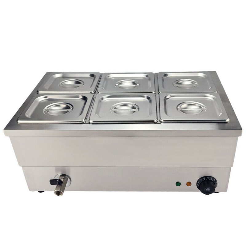6 Pot Wet Heat Bain Marie WIth Pans & Lids Commercial 6BS-W