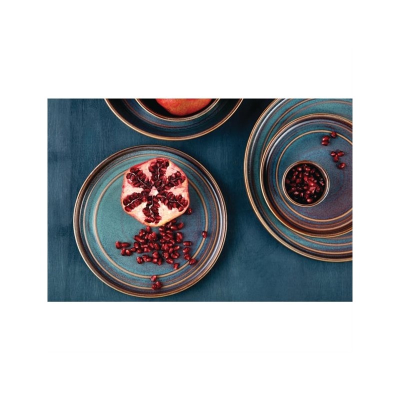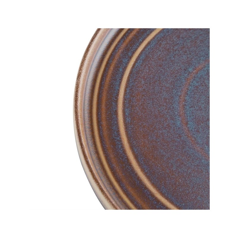 Beautifully frame your healthy dishes with this pack of 6 x 180(Ø)mm Olympia Cavolo Iridescent flat round plates. The plates' colourway contains rich blues and browns, forming an artistic canvas that wonderfully enhances the presentation of your organic ingredients. The reactive glaze finish also means no two plates will look the same, so you can bring a touch of rustic charm to your table settings. The wide, flat base means plating is simple too. This make it easy for you to serve up creative dishes that look every bit as good as they taste.