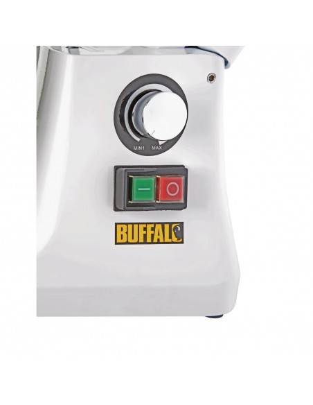 Designed to effortlessly mix your choice of batter, icing, sauces or dough, the Buffalo 7 litre Planetary mixer in white offers professional results at the push of a button. The powerful, 270W motor allows you to mix up to 1.5kg of flour, and a maximum capacity of 2.4kg of dough - giving you the results that you want, fast. The mixer features a stepless speed control that gives you instant adjustment to the mixing speed, depending on the task at hand. The lifting head and stainless steel bowl aid in making cleaning and swapping accessories easy, allowing you to quickly chop and change attachments during service. The mixer includes a removable funnel as part of the splash guard that allows you to add ingredients safely whilst mixing. Crafted with a metal body, the mixer is easy to clean after use and resistant to most wear and tear, making it ideal for commercial kitchens. Supplied with beater, whisk and dough hook attachments, this mixer is great for a variety of preparation tasks.