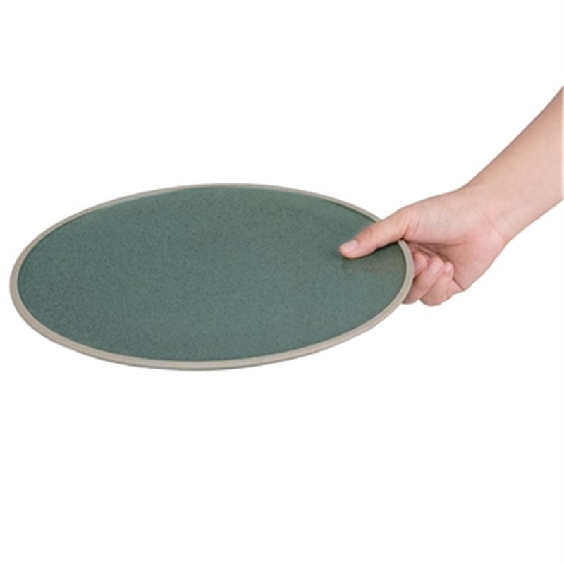 Combining versatility with a timeless design, this pack of 4 green plates from Olympia's Anello range has everything you need to improve the look of your dining service. Featuring a mossy-green colourway, the plates provide a refreshing and natural appearance that compliments any vibrant dishes - something that guests are sure to appreciate. Each plate is designed with a reactive-glaze finish that provides a unique appearance to every item. The plates feature a raw-edged design, that helps to frame your vibrant ingredients, whilst reducing the chance of spillages - preventing wasted foods. Constructed from stoneware, these plates are able to withstand most wear and tear that occurs within the dining room and kitchen, whilst being easy to clean after use - reducing replacement costs and saving you time on maintenance.