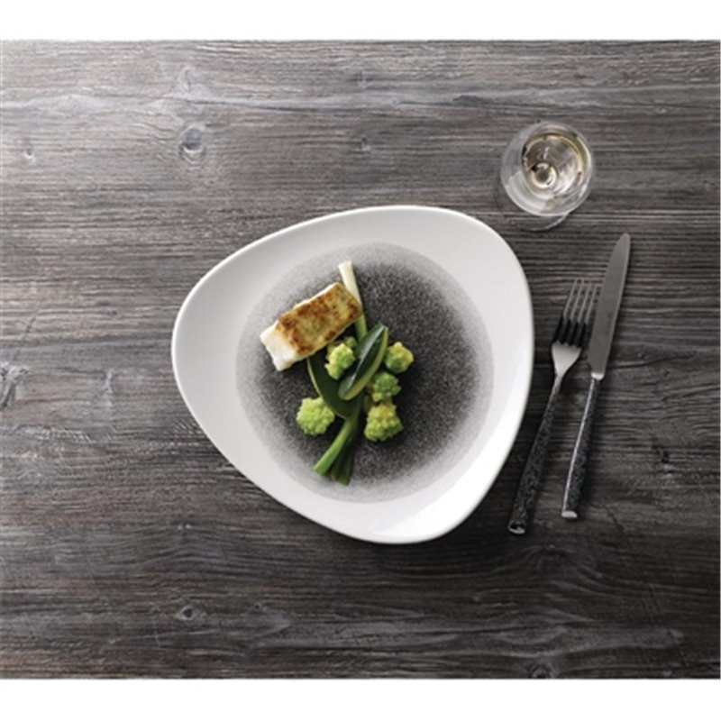 Combining contemporary design with a stylish finish, the Churchill plates from the Raku collection excel in increasing the appearance of any front of house. The plates are crafted with a unique, quartz-black centre that adds any interesting touch and is ideally paired with beautiful food presentation. The plates are designed with a rounded, triangular shape that is sure to impress any style-valuing guests. Constructed from Churchill's super vitrified porcelain material, the plates offer easy to clean and highly durable properties - saving you time on cleaning tasks and money on replacement costs.