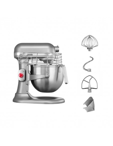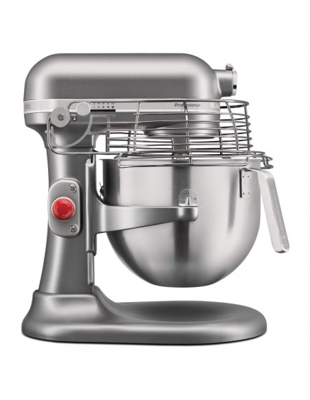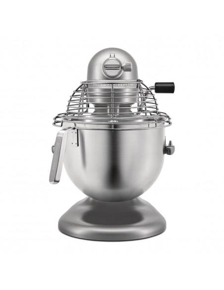 With its silver, all-metal design and powerful yet quiet 1.3HP motor, this KitchenAid 6.9 litre professional stand mixer combines flexible, heavy-duty performance with attractive and stylish looks. Designed specifically to outperform in industrial or production environments, the KitchenAid Professional has all the features you need to produce fantastic results: a strong stainless steel wire guard, emergency stop button, automatic shutoff and a sturdy pouring chute, all ensuring compliance with European Machinery Directives.