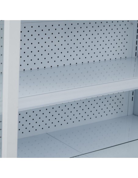 - 4 heavy duty adjustable shelves (300mm deep) with pricing strips