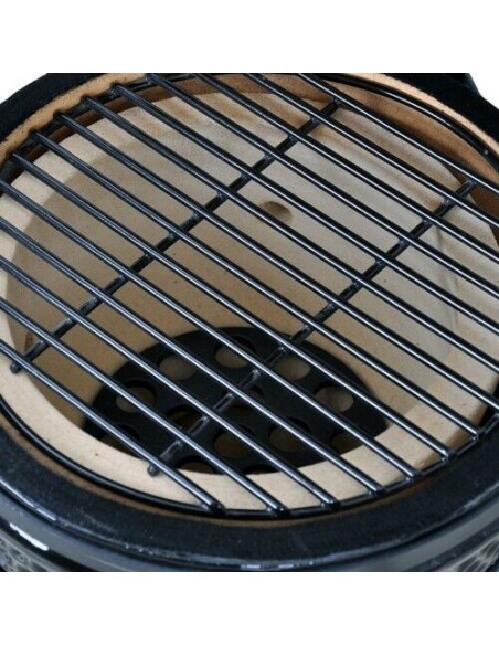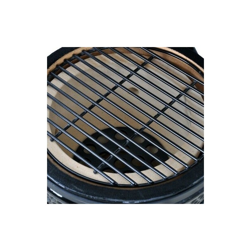 This Kamado Grill Black features a well-insulated ceramic body for excellent heat retention providing perfectly uniform cooking for grilled moist food with an intense flavour unmatched by others. This combined with its unique circular shape for exceptional heat distribution and its dual-disc cast iron top vent for precise temperature control means that your Kamado can grill roast bake or smoke food to perfection. Its highly distinct innovative yet traditional design means that this grill will only enhance the aesthetics of your home, garden or catering establishment.