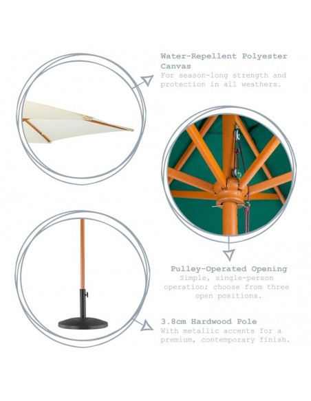 Provide shade and protection for customers with attractive this wide round Stone coloured parasol which is great for patio beer garden and general outdoor use. CD213 Parasol Base sold separately. This parasol is 2.52m high and has a diameter of 2.7m.