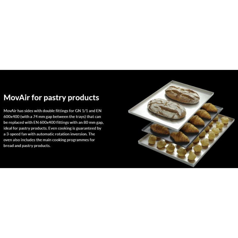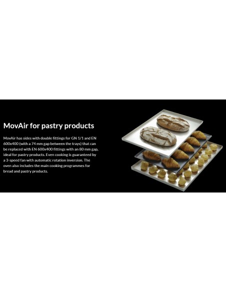Compatible with both Gastronorm (GN) and confectionery-size trays, the Easyair adapts seamlessly to the needs of professional kitchens, bakeries, and foodservice outlets.