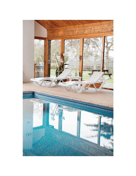 Let guests unwind in your outdoor spaces in complete comfort with this pack of 2 x polypropylene white sun loungers. These white sun loungers feature an adjustable back support with five different settings. This allows guests to choose whether they lay flat or simply recline - ensuring they can relax and soak up the sun in the position that suits them best.