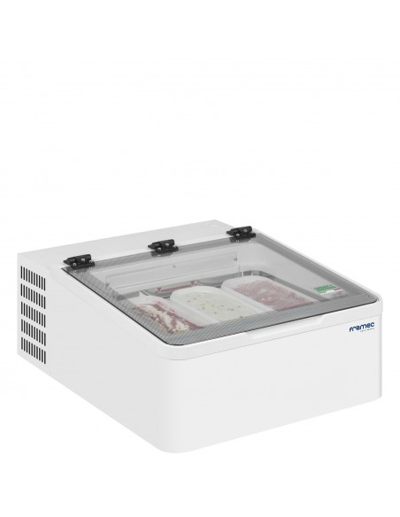 Ideal for where space is limited but you want to maximise sales of scooping ice cream. The Mini Cream range from Framec is a counter top 2 or 3 scoop ice cream freezer. The unit holds 5 litre Napoli pans (or optional lolly tray) and comes as standard with hinged low E glass lid and temperature display. An optional stand is also available.
