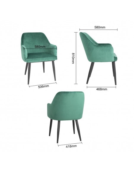Bolero Lia Velvet Set of 2 Chairs - Dark Green
