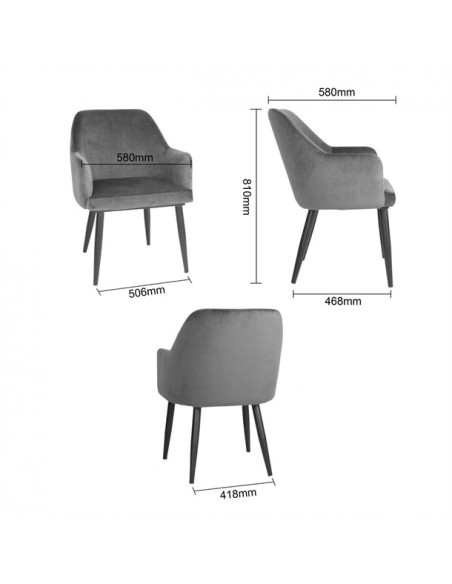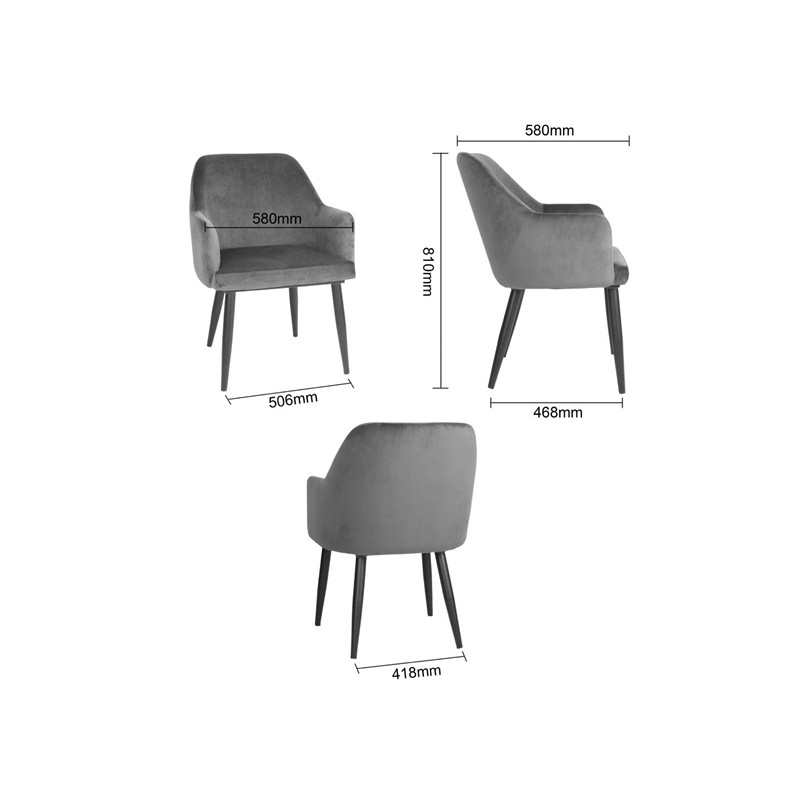 Bolero Lia Velvet Set of 2 Chairs - Grey